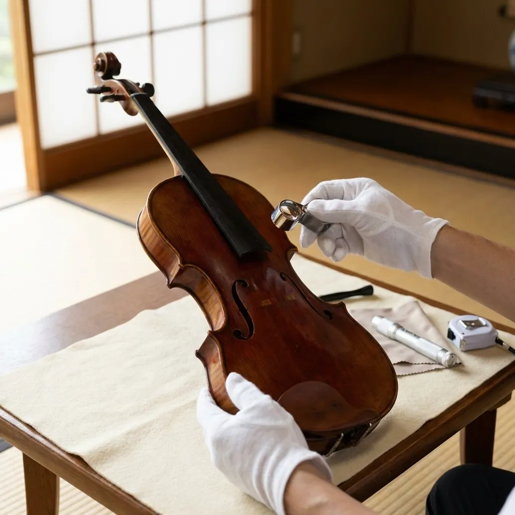 出張買取リアップは、キズや使用感だけで判断せず、ブランド・モデル・製作年に加え、材質、演奏コンディション(ネック反り/フレット減り、割れ・剥がれ等)、電装系の状態(ギター/ベース)、弓・駒など付属パーツの状態(弓奏系)まで、価値につながる要素を細かく確認します。